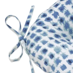 Joyful vibrance of a suzani inspired pattern makes this set of two outdoor tufted wicker chair cushions a delightful addition to your outdoor escape. In shades of blue, aqua and green with a pop of gray on a white ground, these stunning cushions usher in new, irresistible style. Made of 100% polyester. Additional features of these outdoor tufted wicker chair cushions include recycled polyester fiber fill and sewn seam closures. Also suitable for indoor use.