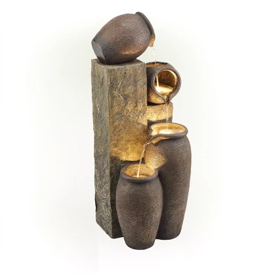 Unplug from the day and meditate to the sound of flowing water with Alpine Corporation’s 43″ tall Outdoor Pottery Fountain with Replaceable LED Lights. This relaxing floor fountain statue provides a tranquil and soothing addition to your yard, porch, or patio. Constructed from durable polystone the fountain is weatherproof, rust-resistant, and resilient for use in your home’s interior décor or outside. This unique and versatile decor piece includes replaceable white LED lights for a tranquil and soothing addition to your home’s backyard or indoor decor. Relax to the sounds of the calming natural water flow as it trickles down through the pottery. For quick installation and convenient operating, the fountain includes all necessary parts, including a pump, to begin creating an outdoor oasis. This fountain measures 17″L x 18″W x 43″H to fit almost any indoor or outdoor space and includes a one-year manufacturer’s warranty from date of purchase. Alpine Corporation is one of America’s leading designers, importers, and distributors of superior quality home and garden decor products. Alpine’s award winning in-house design team continuously develops new and innovative “statement pieces” for your home and garden. Your outdoor living spaces will be the envy of the neighborhood with our wide assortment of fresh, fashionable and contemporary products, from beautifully crafted solar garden stakes featuring patented motion and fiber optic lighting technology to gorgeous glass and glow-in-the-dark birdbaths and feeders.