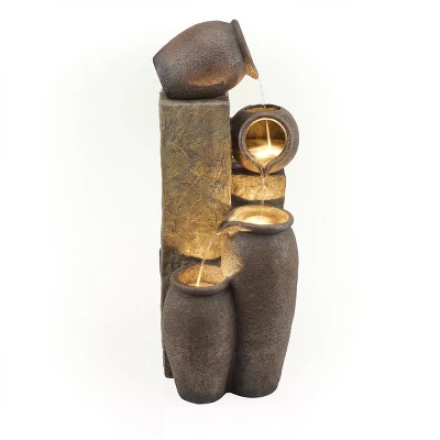 - VERSATILE GARDEN DÉCOR WITH LED LIGHTS: Contemporary cascading water fountain with a natural look and replaceable white LED lights will provide a tranquil and soothing addition to your indoor or outdoor living space