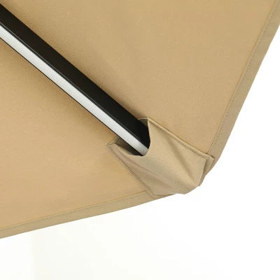 The Mirage II Fiesta 9-ft Octagon Market Umbrella will illuminate your evening and add ambience to your outdoor entertaining area. Position your patio table and umbrella wherever you choose without the hassle of an inconvenient and unattractive cord. Powered by solar energy, the 64 LED tube lights will run for up to 4 hours when fully charged. The Mirage’s crank system seamlessly raises or tilts the canopy so you can maneuver the shade with ease. The umbrella’s sturdy 1.5-in diameter aluminum pole and 8-rib canopy support system are powder-coated in a bronze finish. The Breez-Texâ„¢ canopy fabric is fade and weather-resistant, sporting a single wind vent that allows air to escape in breezy conditions. A user-friendly crank opens the umbrella creating up to 57 square feet of shade and control the sun’s exposure from any angle with a convenient crank-and-auto-tilt hinge. The Mirage II Fiesta umbrella is backed with a 3-year Breez-Texâ„¢ canopy warranty and a 1-year warranty on the pole and structure. Base sold separately.