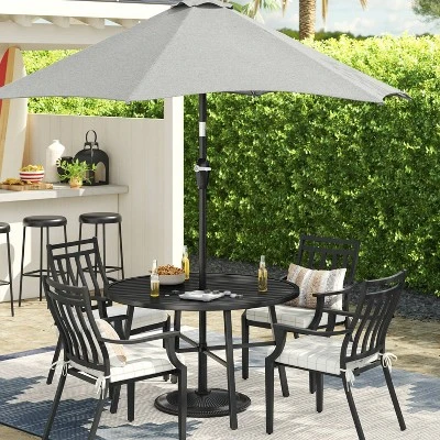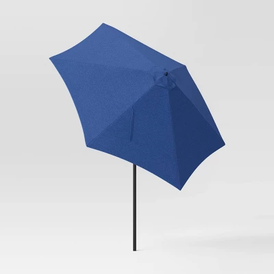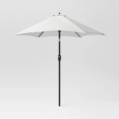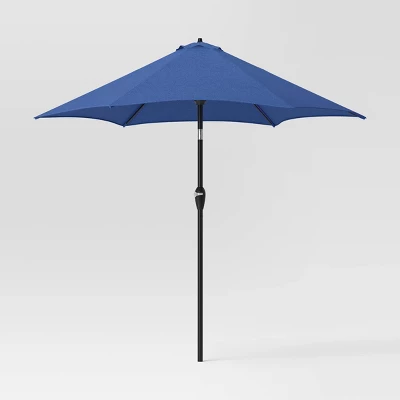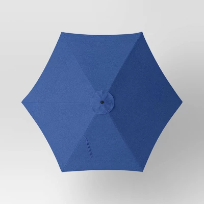 Add style and shade to your patio with the addition of this 9-Foot x 9-Foot Sunbrella Market Patio Umbrella from Smith & Hawken™. Made with fade-resistant, solid-colored acrylic fabric, it makes an easy pairing with any patio decor scheme. Supported by a steel frame and black pole, this umbrella is compatible with centered pole umbrella bases (sold separately). Convenient to use, the crank lift and push-button tilt lets you easily adjust this umbrella to keep everybody in the shade.