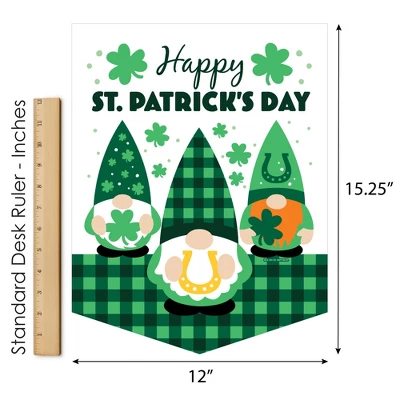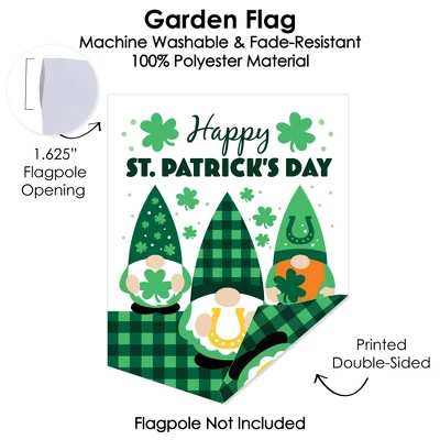 Irish Gnomes Garden Flag INCLUDES 1 polyester fabric material garden flag in a vertical pennant shape that measures 12 inches wide and 15.25 inches tall. (Flagpole Not Included) Cute Decor: Welcome houseguests with this weather resistant Irish Gnomes Garden Flag. Printed double-sided, Gnome and Shamrock – St. Patrick’s Day Party Garden Flag looks great placed close to your home, added to flowerpots, or displayed next to your favorite garden gnome decoration. Yard & Home: Irish Gnomes Garden Flag is machine washable and fade-resistant, allowing you to easily display in your outdoor lawn or inside your home for a fun St. Patrick’s Day Party decoration. The small and cute size helps make this a great housewarming gift for a loved one’s deck, patio, porch, or yard. High-Quality Supply: Irish Gnomes Garden Flag is professionally printed double-sided on 100% polyester material. With a 1.625-inch flagpole opening, easily & quickly display the vibrant Gnome and Shamrock Garden Flag. Please Note: Flagpole Not Included – will fit most standard-sized garden flag stand flagpoles. Printed In The USA: Irish Gnomes outdoor lawn and home Garden Flag is designed and manufactured at our Wisconsin facility using materials that are Printed in the USA – Fabric Flag Made in China.