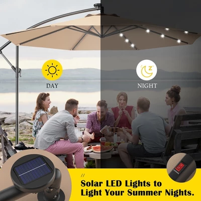 package include:1 x 10ft Solar Powered Offset Umbrella with cross base