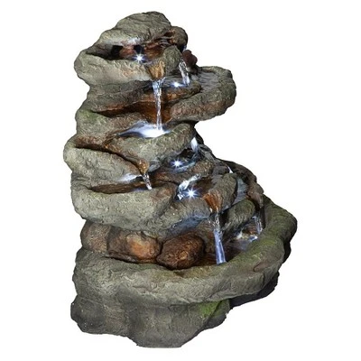 - Sparkling LED Lights – Place this amazingly detailed, rugged illuminated fountain anywhere, with pools highlighted by the included LED lights, you can even enjoy this garden fountain in the evening