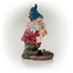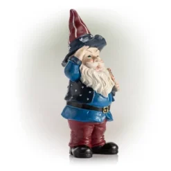 12″ Polyresin/Stone Americana Saluting Gnome With Flag Red/White/Blue – Alpine Corporation