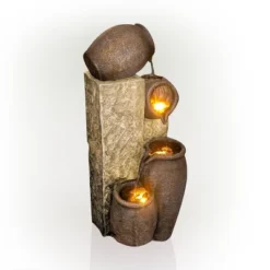 43″ Indoor/Outdoor 4-Tier Cascading Vase Fountain With LED Lights Gray – Alpine Corporation