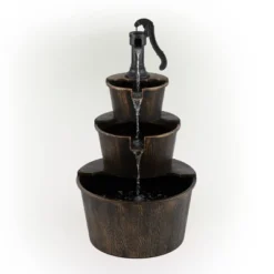43″ Indoor/Outdoor Pottery Fountain With Replaceable LED Lights Brown – Alpine Corporation