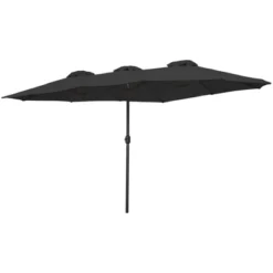 Enjoy tons of fresh air this summer without having to sit in the hot sun with our 8.5-foot traditional style wooden market umbrella. Ideal for covering a 48-inch or four-person dining set. Features sturdy wood frame, ribs, and pole that are built to last a lifetime. The double-wheel pulley allows for ease of use. Features:Umbrella shape: octagon Canopy color: burgundyFrame and pole color: wood Diameter of open umbrella: 9’Height: 8′ Pole diameter: 1.5″ (38mm) Lift: double wheel pulley 8 ribs Plastic finial top Material(s): 160 gram polyester canopy/wood pole and ribs/plasticNote: Umbrella only, base is not included