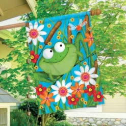 Froggy Fun Summer House Flag Floral 28″ X 40″ Briarwood Lane