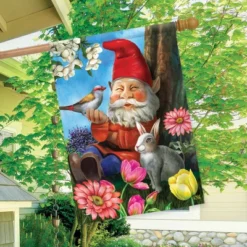Garden Gnome Spring House Flag Birds Floral 28″ X 40″ Briarwood Lane