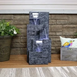 Sunnydaze Decor Sunnydaze 34″H Electric Polyresin 3-Tier Budding Fruition Outdoor Water Fountain