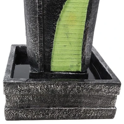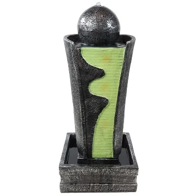 Give the patio or garden area an impressive contemporary accent with this freestanding water fountain featuring a rounded top accent and a vibrant, textured, and wavy design down the front. Constructed of durable polyresin and fiberglass, these materials have been formed into a beautiful combination of shapes and textures to create this fountain. Placed in any garden, patio, deck, yard, or other landscaping area, this fountain is sure to draw attention from friends, family, and neighbors! The wall that the water flows down features a rippled texture combined with smooth wavy lines for decorative appeal. Once the water reaches the bottom basin, it is recirculated through the fountain through the included electric submersible pump. No plumbing is needed to install this modern piece of outdoor decor. The pump plugs into any standard outdoor electrical outlet for ease of use once it is placed in your desired location and is filled with water.