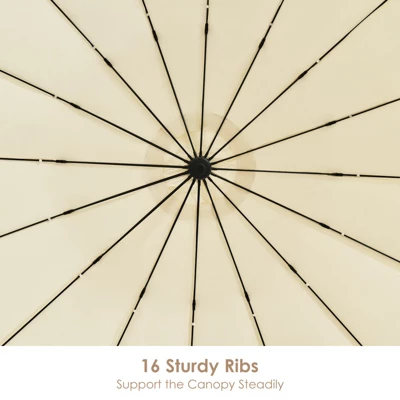 - Built for Stability: Vary from other outdoor umbrellas which only have a pole, this hanging market umbrella is equipped with a cross base (it’s better to use a base weight to keep the umbrella stable). In addition, 16 sturdy ribs and aluminum core connecting the ribs support the canopy steadily.