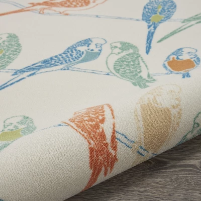 In tropical shades of red, green, blue and coral, playful parrots perch on delicate blue branches to perfectly compliment any setting where a little magic is a must. With its touchable texture and ultra-easy maintenance, this Retweet indoor/outdoor area rug by Waverly is undeniably uplifting.